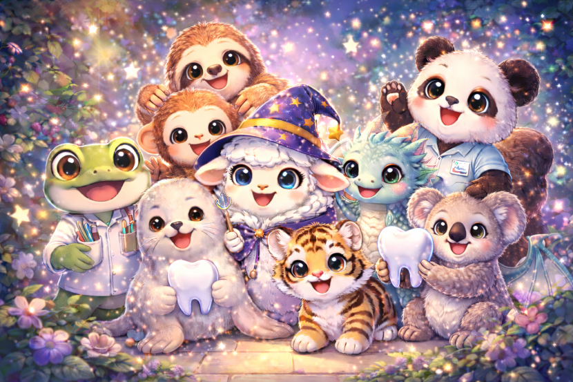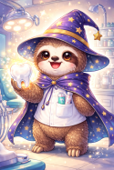 Inessa assistierte bei den Behandlungen und reichte ruhig die Instrumente, während ein kleiner Koala mit Zauberhut neben dem Stuhl saß. Mit seiner stillen Magie wurde das Behandlungszimmer heller, die Nervosität verschwand, und die Zähne begannen zu glänzen. Am Ende war alles geschafft, und Inessa wusste, dass selbst ein gewöhnlicher Tag beim Zahnarzt ein wenig Zauber in sich tragen kann.