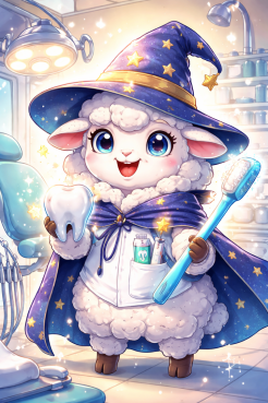 Es war einmal eine Zahnärztin namens Raghad, die besonders bei Kindern sehr beliebt war. Eines Tages kam ein kleines, flauschiges Schäfchen mit Zahnschmerzen in ihre Praxis. „Mein Zahn tut weh, und ich kann kein Gras mehr knabbern!“, klagte es. Raghad lächelte freundlich und half dem Schäfchen, den Splitter aus dem Zahn zu entfernen. Schon bald konnte es wieder fröhlich grasen. Die Kinder im Dorf hörten davon und kamen nun gerne zu Raghad, weil sie wussten: Zahnarztbesuche können auch sehr spaßig sein!