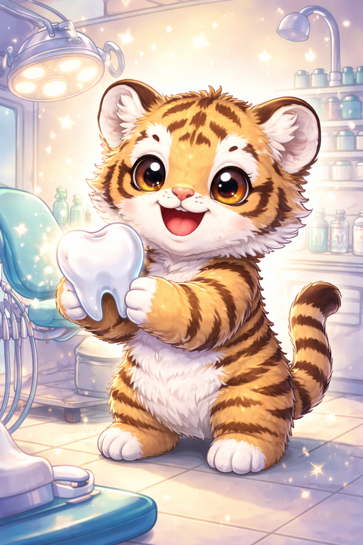Ilia hatte einen ganz besonderen Helfer in der Zahnarztpraxis: einen kleinen Tiger! Obwohl er noch ein Baby war, war er schon erstaunlich geschickt. Mit seinen tapsigen Pfoten half er ihm, die Patienten zu beruhigen und die Behandlungen vorzubereiten. Mit so einem tapferen, wenn auch noch kleinen Tiger an seiner Seite machte die Arbeit doppelt so viel Spaß.